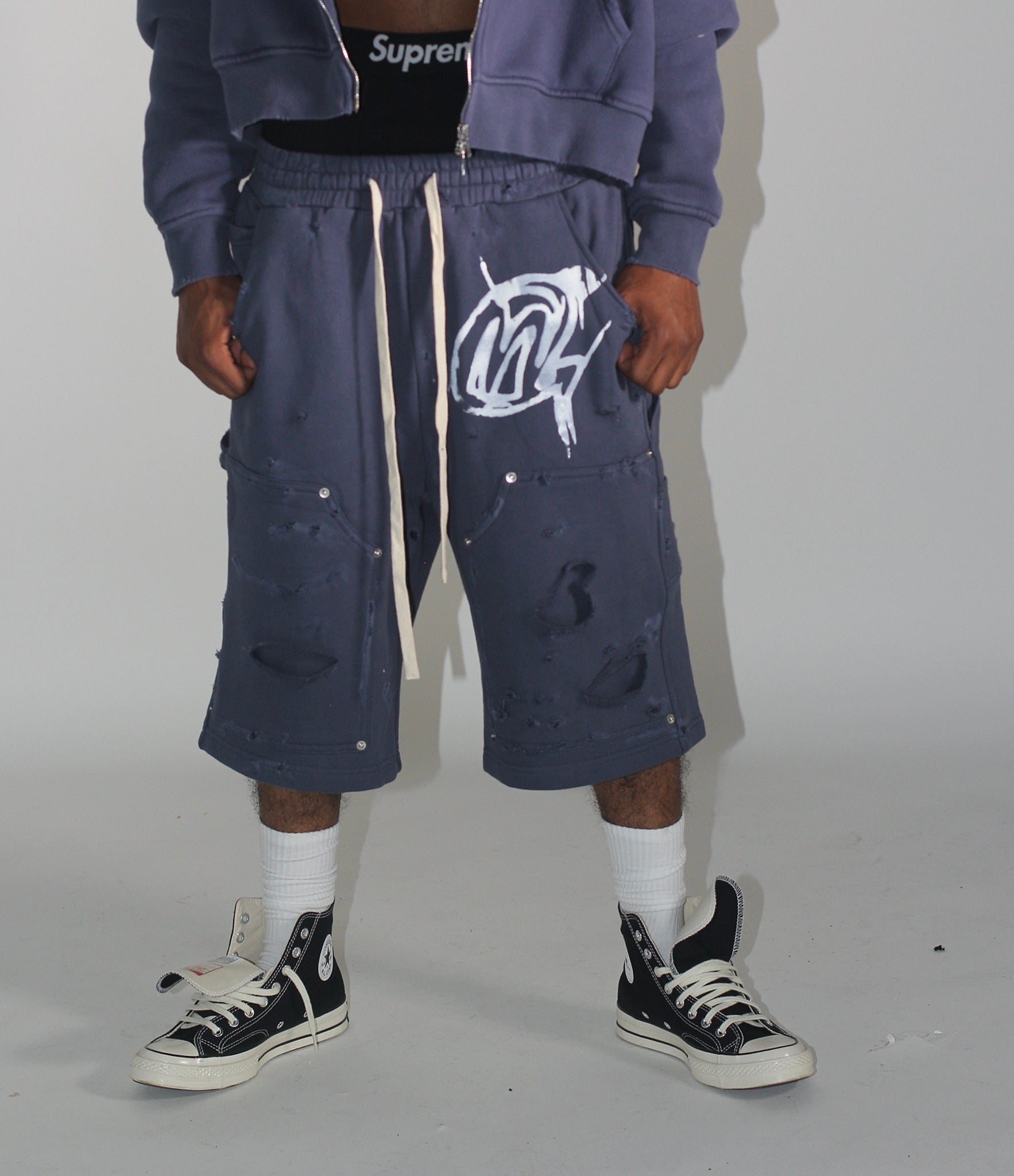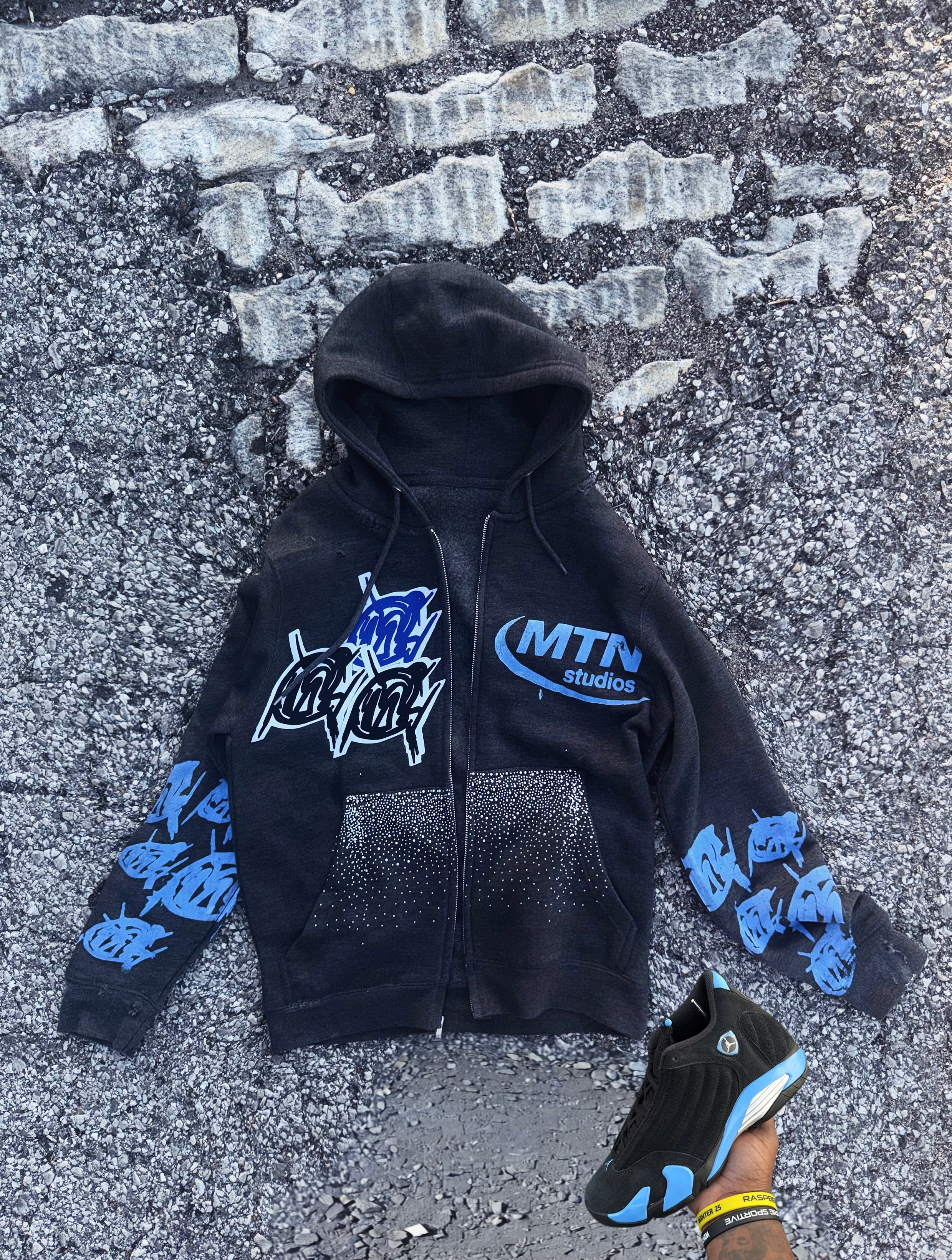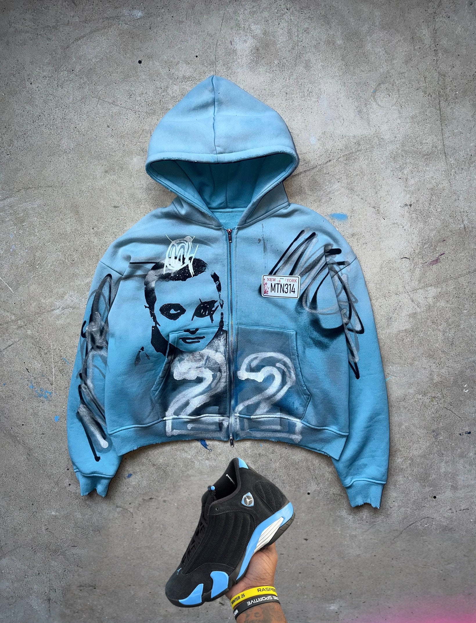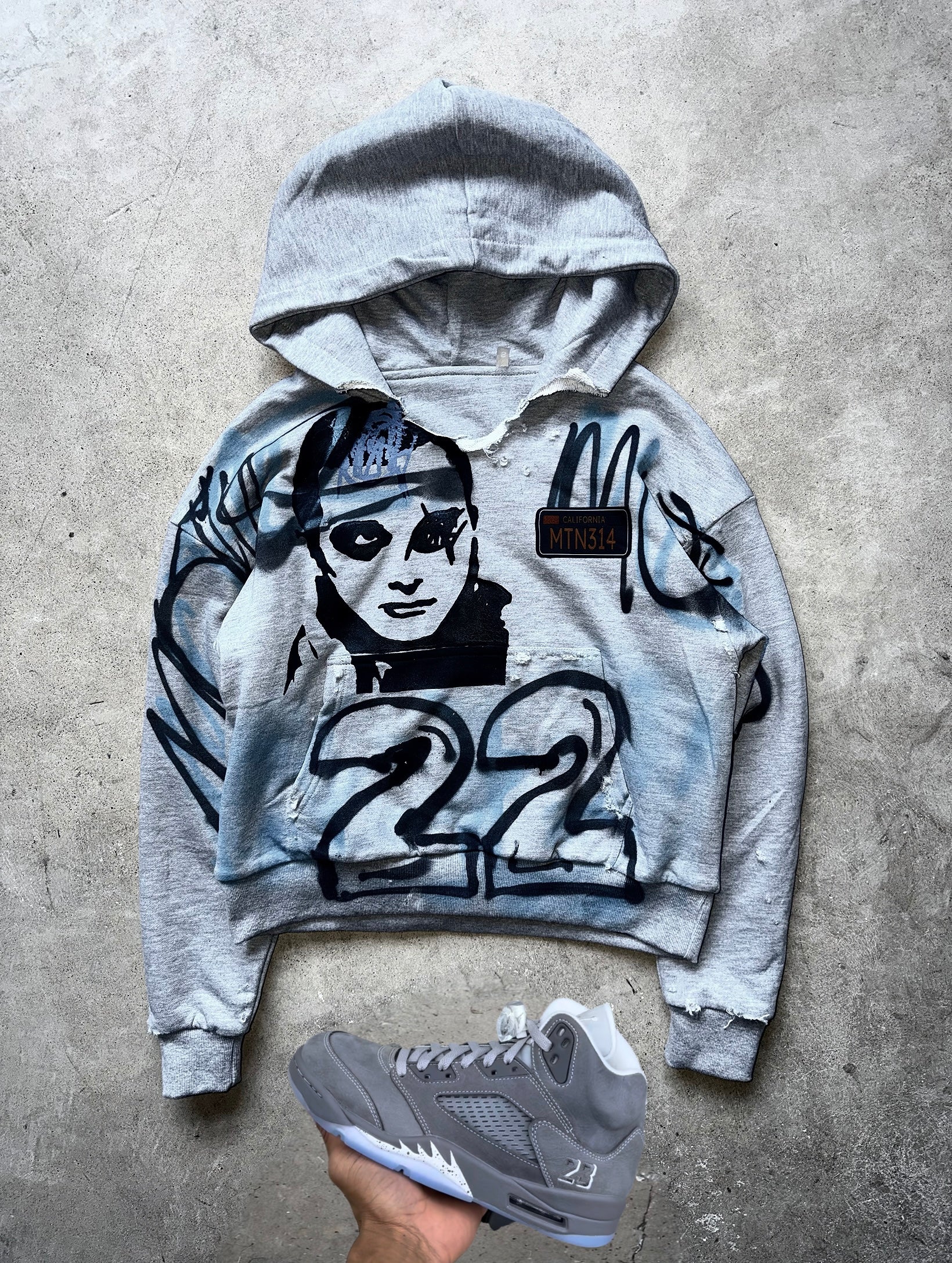 Distressed wolf Grey 5s HEAVYWEIGHT Graffiti Hoodie